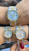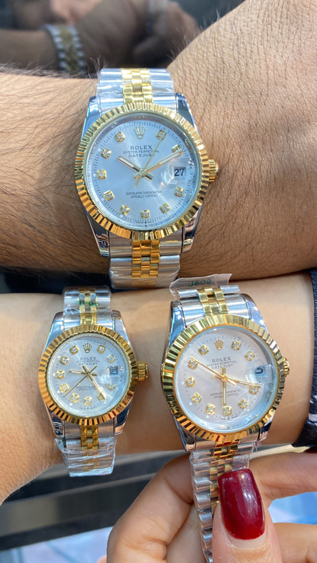 ساعت مچی زنانه و مردانه رولکس دیت جاست به صورت تک و ست به رنگ دورنگ طلایی صفحه سیلور (زنانه در ۲نوع قاب )